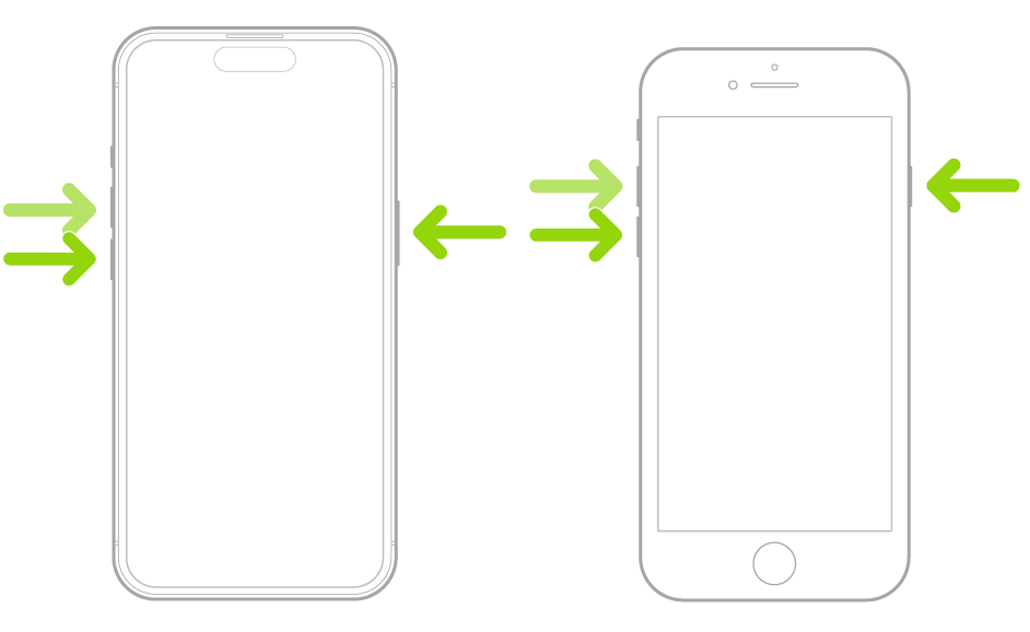 • Press and hold the Side button and the Volume Down button together until the Apple logo appears.