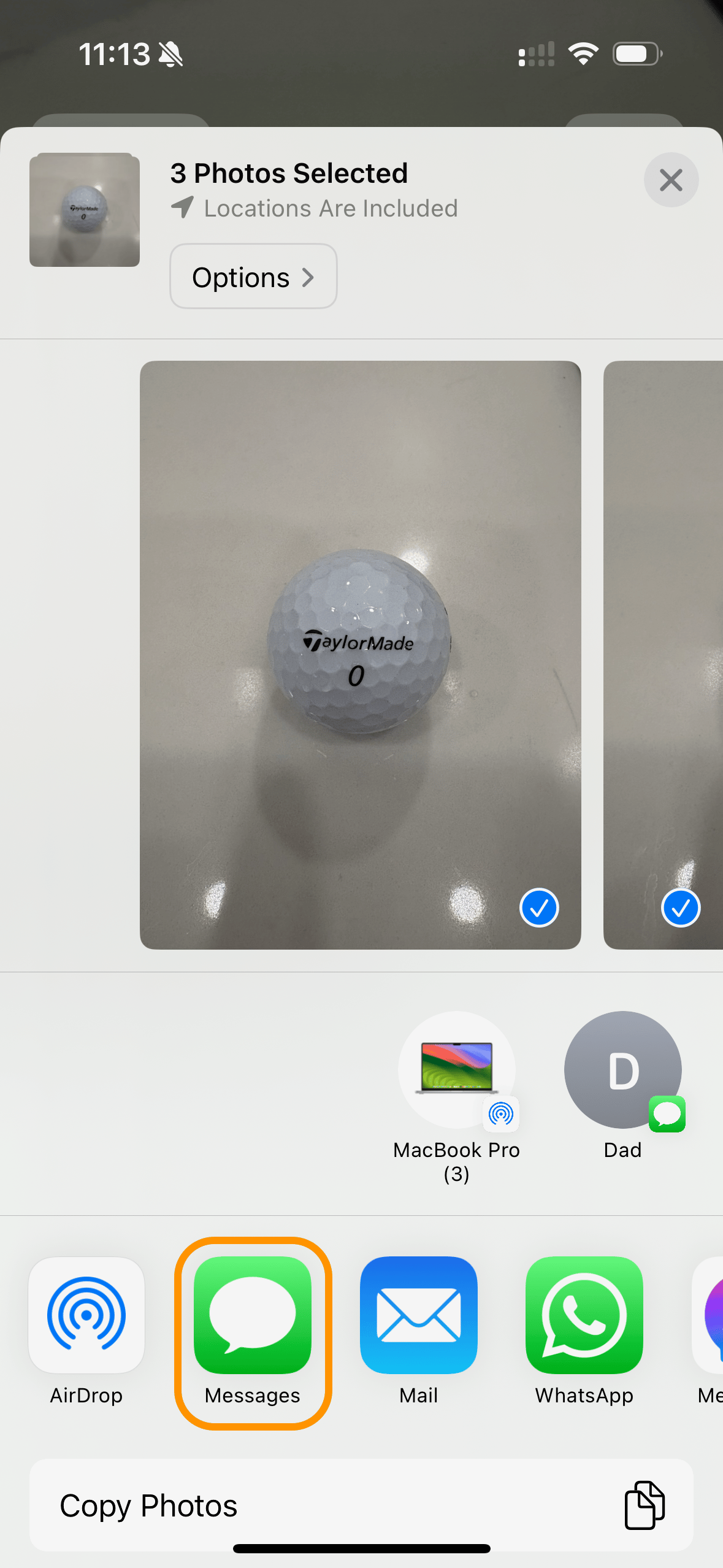 You’ll also notice it says “3 Photos Selected” at the top, which confirms you are sending more than one photo.