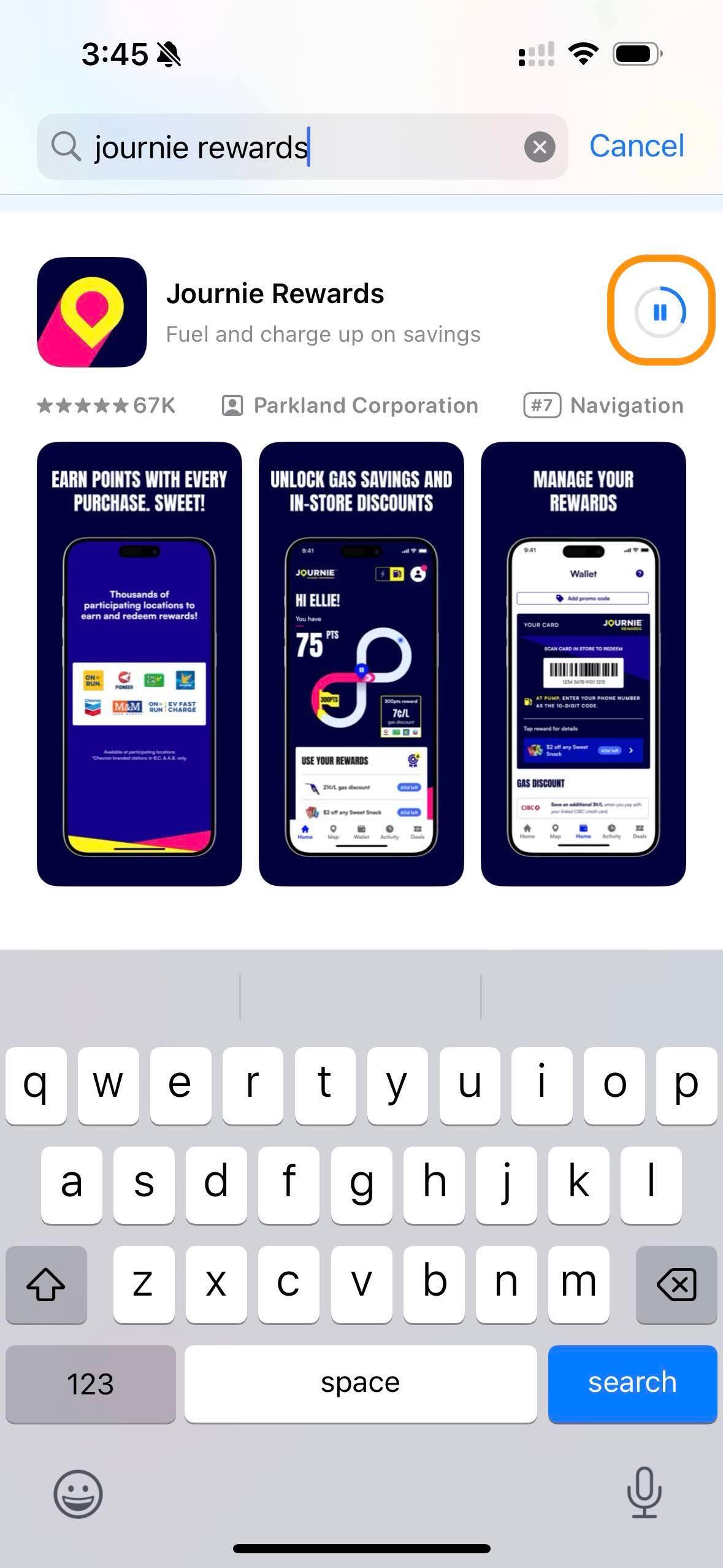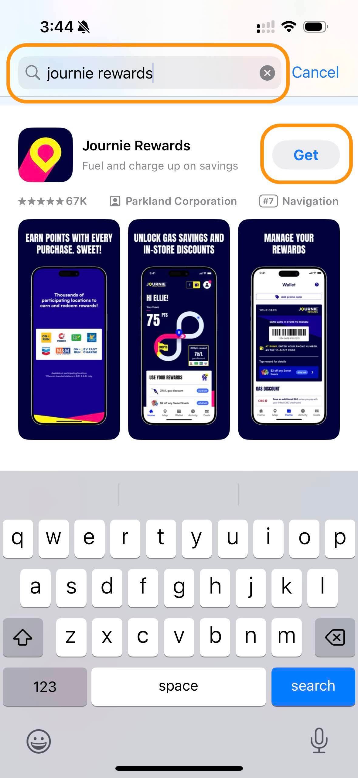 In this example we’ll download an app called “Journie Rewards,” but you can substitute any other app name you like.